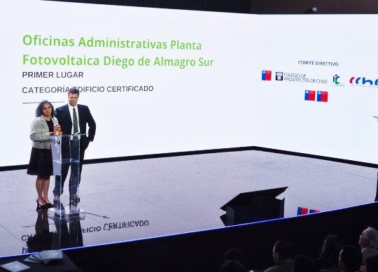 La compañía fue premiada por sus oficinas administrativas en la Planta Fotovoltaica Diego de Almagro Sur, destacadas por su diseño sustentable, eficiencia energética y enfoque modular adaptado al entorno del desierto de Atacama.