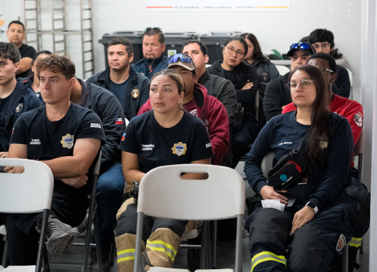 Colbún junto al Cuerpo de Bomberos de Arica desarrollaron una jornada de capacitación en las instalaciones del proyecto Celda Solar a 35 voluntarios del Cuerpo de Bombero de Arica, con el fin de profundizar en el conocimiento de las tecnologías de almacenamiento de energía en baterías BESS y los protocolos de acción ante eventuales emergencias.